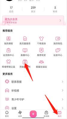 1、打开软件,点击我的进入个人中心后,点击【充能领福利】。