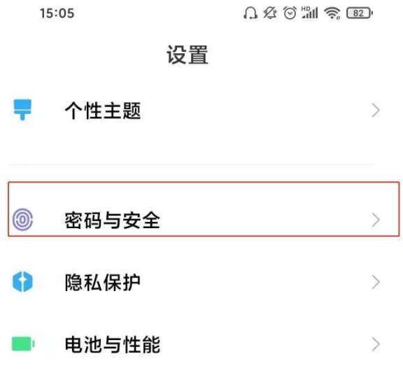 1、打开设置,点击进入密码与安全。