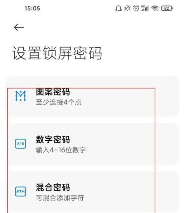 3、选择需要的锁屏方式,然后设置密码即可。