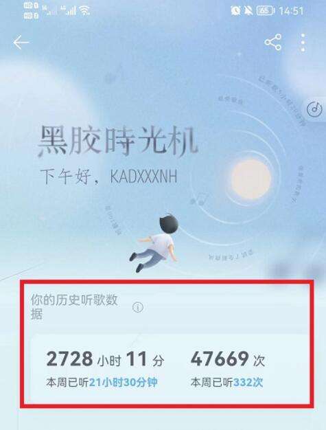 3、接着,进入后,就可以看到自己本周的听歌次数和听歌时长。