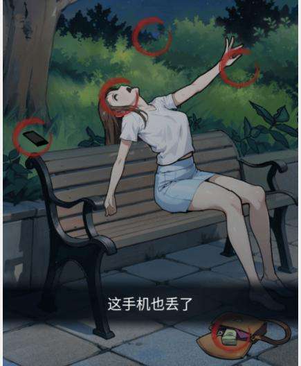 1、场景一,点击下图所示的点,左滑草丛,点击草丛里的手机