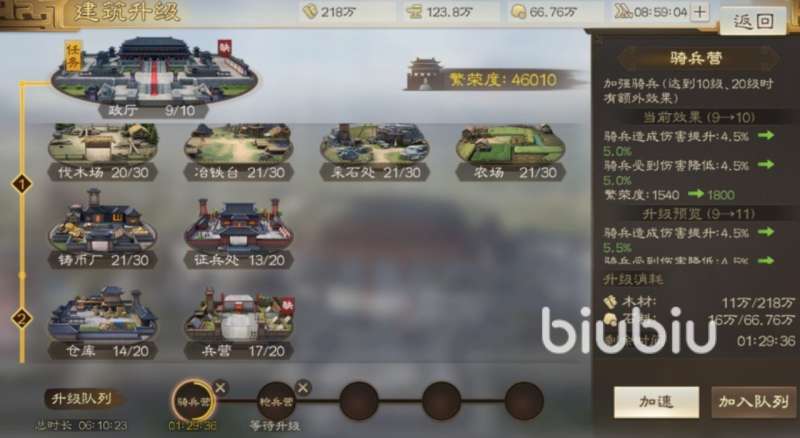 征兵处,尽管没有他,我们也可以进行征兵,不过征兵处的建造则可以提升我们的征兵速度,缩短征兵所需要的时间。如果玩家前期打战狂的话,征兵速度一定要跟上部队的消耗。