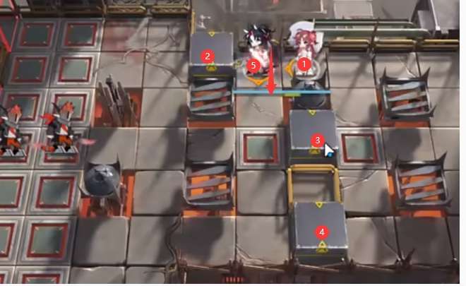 继续部署:夜莺(向下)→ 塞雷娅 → ③号位置箱子 → 艾雅法拉(向上)→ 水月(向上)