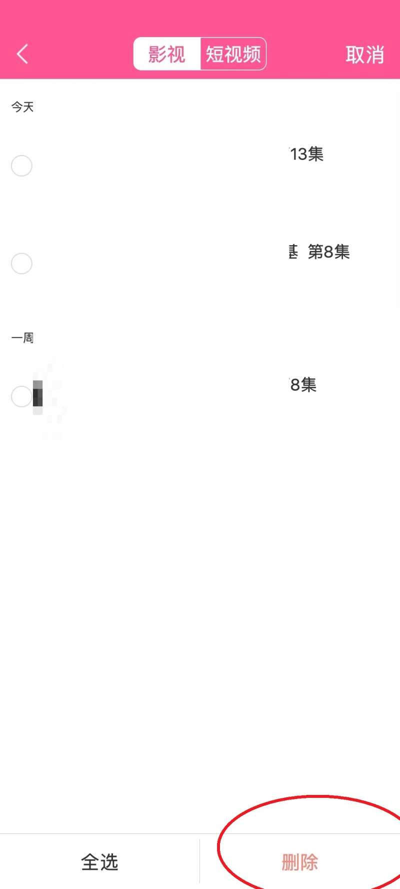 第三步:选中各种视频后,点击下方的“删除”按键即可。