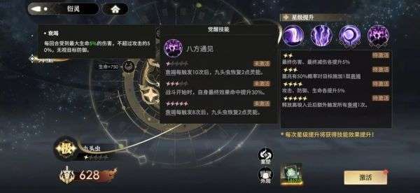 九头虫的核心输出机制为【衰竭】,他几乎所有星级天赋都与【衰竭】相关,无论是普攻几率挂衰竭,还是灵技额外触发1次衰竭,还是触发X次衰竭后回能都是对他能持续打出真伤的重要保障。