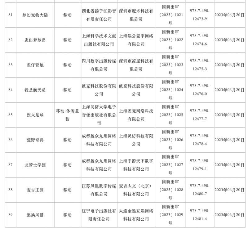 据了解,国家新闻出版署刚刚发布了2023年6月份国产网络游戏审批信息,总共89款游戏过审,《仙剑世界》、《流浪地球》、《燕云十六声》等游戏通过审核。