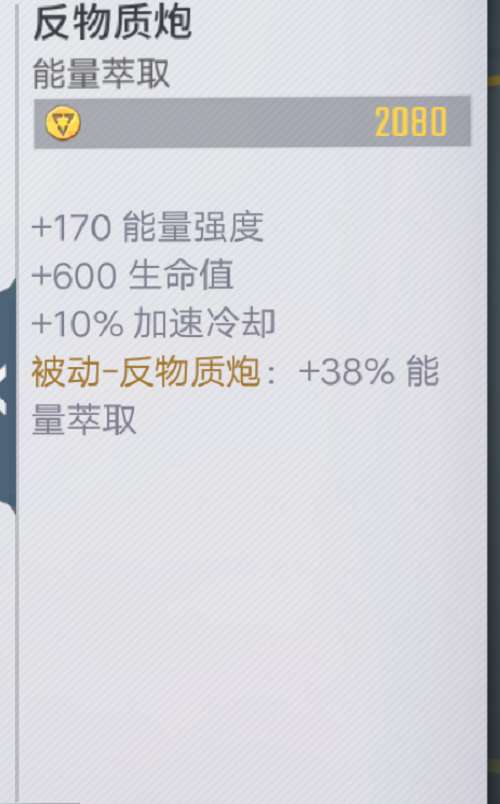这件装备令我看好的就是被动的38%能量萃取,我选择的为能量强度提升而这件装备可以提升续航能力在中后期团战都能提供一定的生存且魔仙子相对来说是个软辅远距离续航可以让魔仙子可以多抓住机会为队友提供护盾、对敌人造成致盲效果,以及在边缘帮助队友团战胜利的留人以及团战中还有边续航边消耗的能力,另外依靠技能和强化普攻输出,强化普攻伤害有了提升之前的装备也都提供了一定的能量强度(魔仙子技能都受到能量强度影响)现在cd相对较少我觉得这件装的加速冷却不是特别重要,不过能减少一些也算不错毕竟是个附带的属性不要白不要啊。