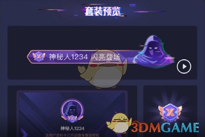 3、神秘人套装包含:昵称:神秘人xxxx;进场特效:头像、勋章、资料卡;
