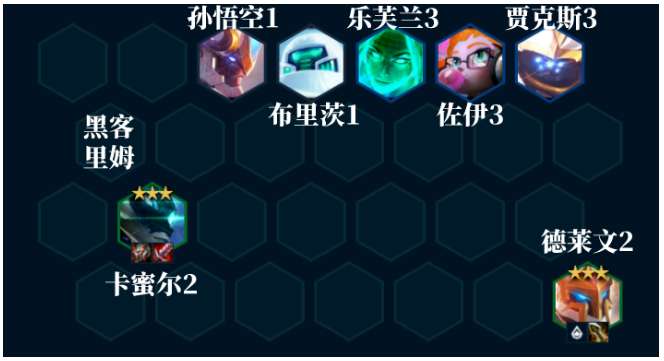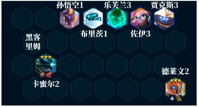 阵容组成:布里茨、卡蜜尔、德莱文、乐芙兰、佐伊、孙悟空、贾克斯