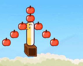 4、走到正方形阶梯上向左吃掉左侧苹果,