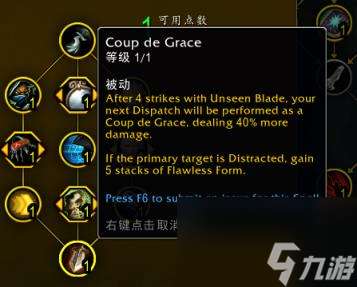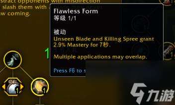 被动:在施加4次无形之刃后,你的下一个斩击会变为致命一击,造成40%额外伤害。如果主目标被扰乱,还会获得5层完美形式。