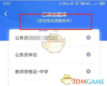 2、上方显示的是当前的练习题库,拖动可以调整顺序