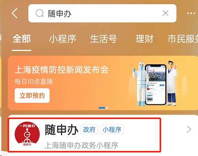 随申办就能出示保供通行证,使用微信或者支付宝打开随申办都可以,这里以支付宝为例。