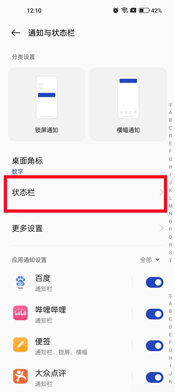 1、打开设置,点击通知与状态栏。