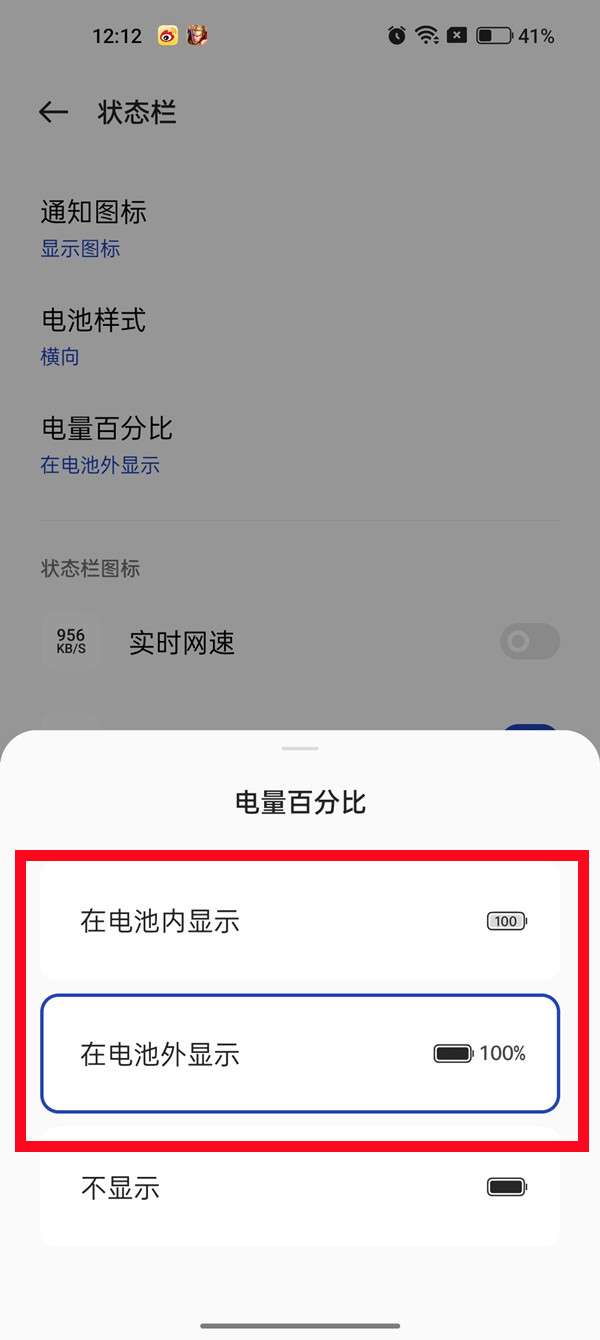 3、点击电量百分比,选择百分比显示样式即可。