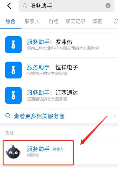 1、打开钉钉,搜索服务助手,点击进入该功能。