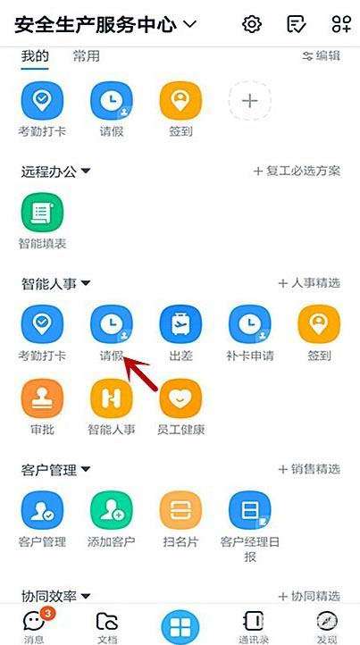 3、点击“请假”。
