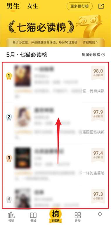 第三步:在必读榜界面,即可查看必读榜书籍。