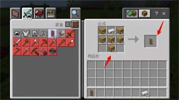 2、或者我们可以进入到生存模式中,我们去打开工作台,直接去使用木板和铁锭来合成盾牌;