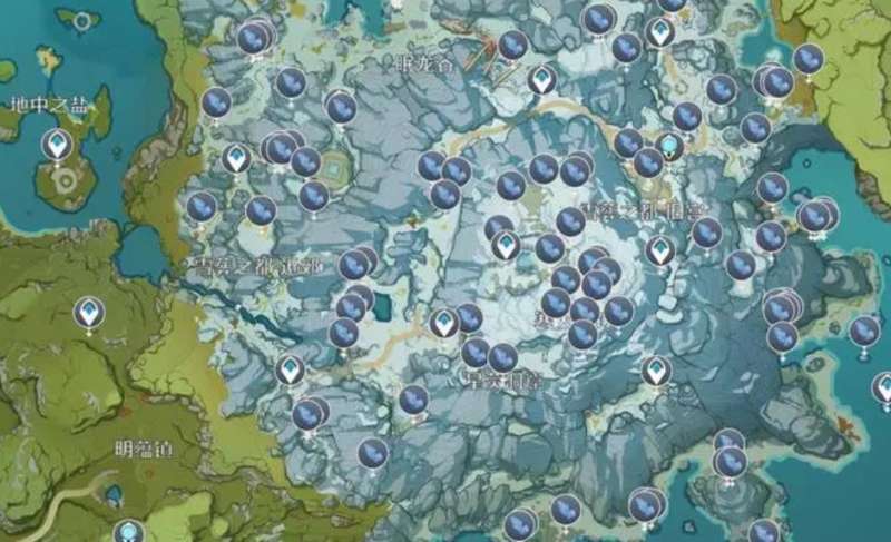 第四个地点是在眠龙谷外的河岸边上,玩家需要通过传送点来到眠龙谷,再往外围的河流走去。在该地有两个星银矿石矿,第一个是在挑战装置旁,总共有二至三块。第二个则需要我们继续往山脚的位置走过去,能够看到一个冰霜丘丘人法师。绕过他继续走,到达山壁下方就可看到一小片矿石,击碎后差不多能拿到四块。最后一个位置是在雪葬之都近郊附近的山洞里,在洞口处就有一个矿点,往里面走还有一处,总共加在一起可拿到五块左右。