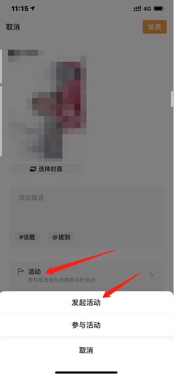 3、在发表的页面上选择,选择【活动】点击【发起活动】即可。