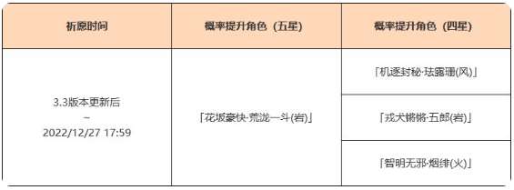 ●活动期间,限定五星角色「花坂豪快·荒泷一斗(岩)」的祈愿获取概率将大幅提升!