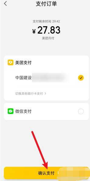 5、进入支付订单页面,选择还款银行卡,点击确认支付就可以了。