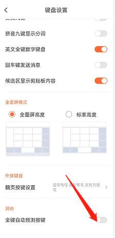 3、接着,选择下方的【全键自动预测按键】,开启即可。