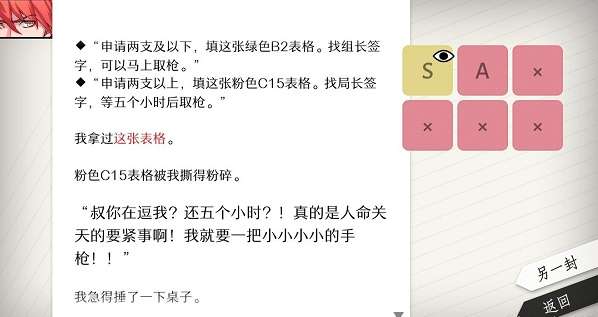 A级结局:请两支及以下——申请两支以上——地上有一把玩具枪(放在“只要有组长的签字”下面)