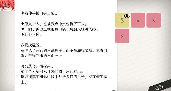 S级结局:我伸手摸向他裤口袋——第九个人——一颗子弹擦过我的裤口袋——翻身下树。