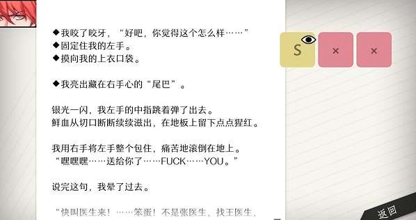 S级结局:我咬了咬牙——固定住我的左手——摸向我的上衣口袋——我亮出藏在右手心的“尾巴”。