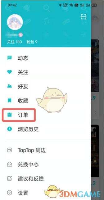 2、然后在菜单中点击【订单】,查看自己购买的游戏;