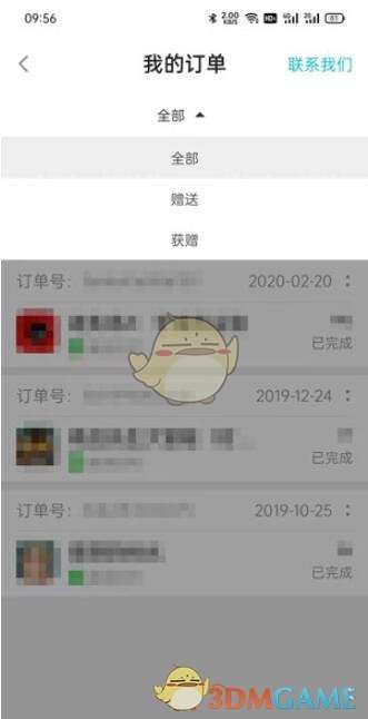 4、点击上方可切换订单类型,筛选查看自己赠送、获赠游戏。