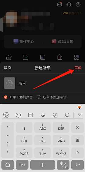 3、输入听单内容,点击完成。