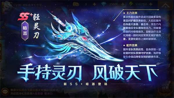 佩戴魂师每造成一定次数的次伤害,对当前普攻目标额外造成多段攻击力多倍的伤害(对护盾有加成),释放大招时,轻灵刃释放持续的风刃乱舞;
