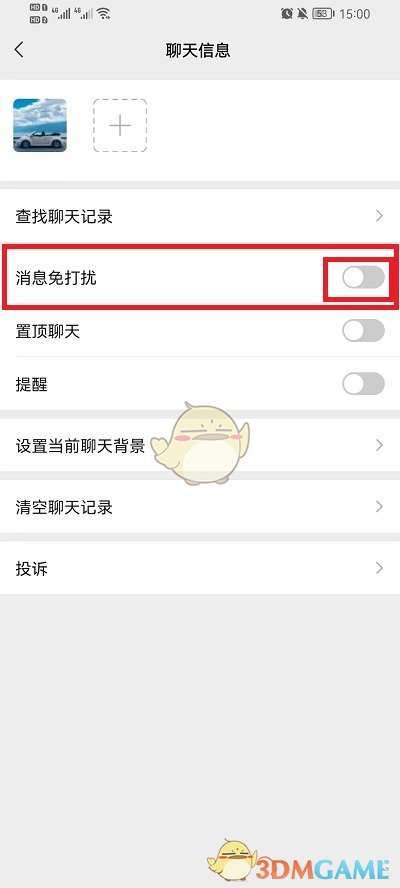 3、在页面中就可以看到下方的【消息免打扰】只需要打开此功能,就可以拒收对方的消息。