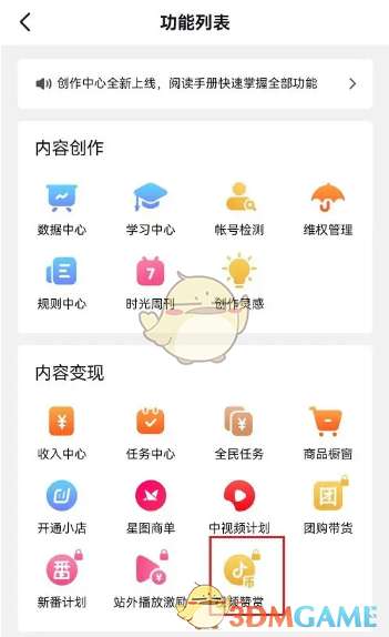 4、点击“视频赞赏”选项进入,满足要求后即可开通。