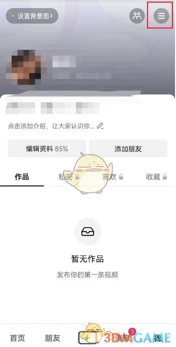 1、打开抖音app,点击“我”,然后点击右上角“三横”