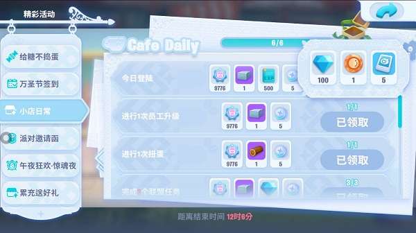 7、扭蛋币的获取:小店日常、活动签到、咖啡协会、给玩家配餐满40次等都能获得扭蛋币。