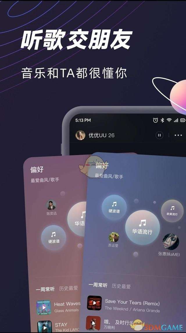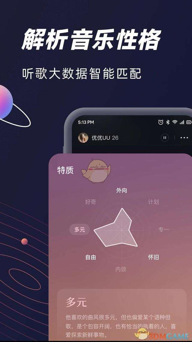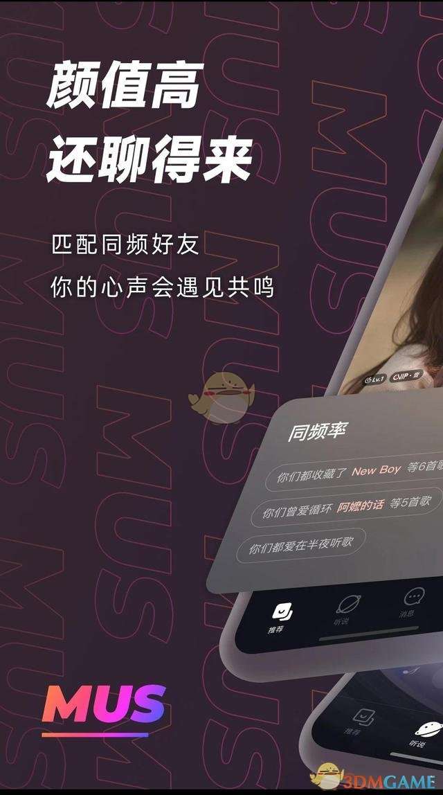 2、“MUS”可以让用户通过音乐认识性格爱好相契合的人。系统将会对用户听歌的数据进行解析,例如用户收藏的歌曲、循环的歌曲以及听歌的时间段等。系统分析用户听歌数据之后,给用户匹配同频共振的用户,MUS 称之为“同频朋友”,匹配成功后双方可以查看对方的详细共同点。