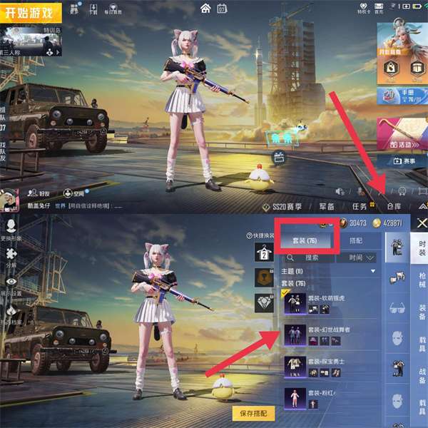 2、玩家可以在仓库中找到拥有的套装,选择自己喜欢的套装后点击完成即可。