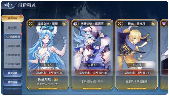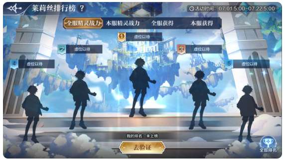 开启上榜精灵:莱莉丝、大师九九、智慧圣魂、神祇帝释天;2022年7月1日前推出精灵暂未开启精灵战力和精灵获得榜