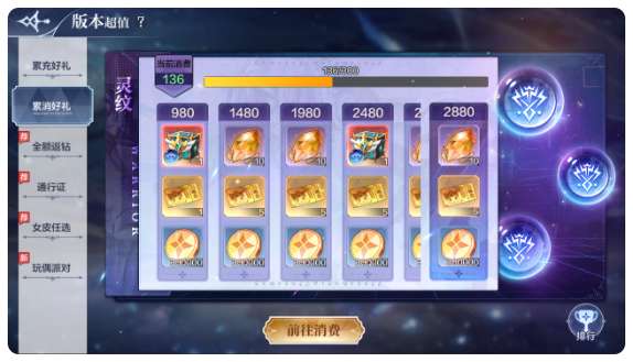 活动内容:新版累消活动上线,在活动期间内,所有神钻消费均计入累计累计消费,达到指定数量即可领取奖励:亘古鸣雷红色灵纹自选箱*4、大量灵纹经验、召唤券、海量金币等惊喜奖励!