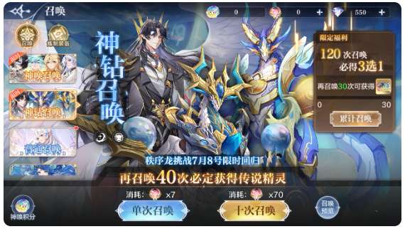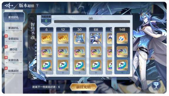 活动内容:新版累充活动上线,在活动期间内,所有充值均计入累计充值,达到累计金额即可领取奖励:智慧圣魂(7.15神唤卡池UP召唤获得)、智慧圣魂觉醒魂、智慧圣魂神器宝箱、水系传说之魂、传说之魂、精灵皮肤任选箱(超神龙、次元龙、星绛、秩序女皮、修尔皮肤、爱心皮肤、龙尊皮肤、五王、传说之魂自选)、金色星神、橙+1装备、神唤券、神炼石等惊喜奖励!