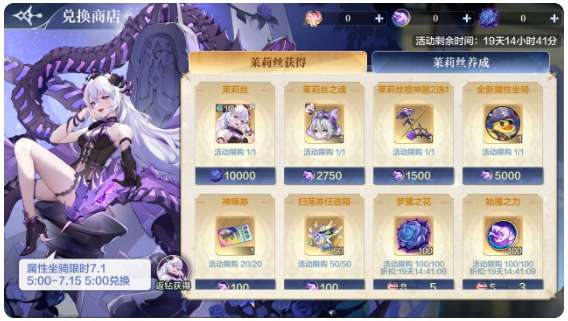 活动内容:梦魇始魔•莱莉丝、大师•九九,智慧圣魂神器将于7月1日5:00后开启兑换