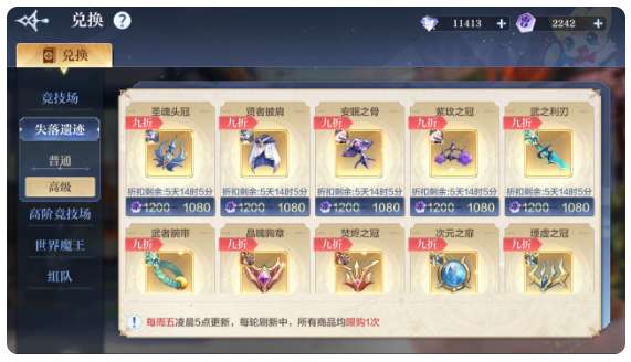 三十三、【神器兑换】失落遗迹高级神器兑换更新