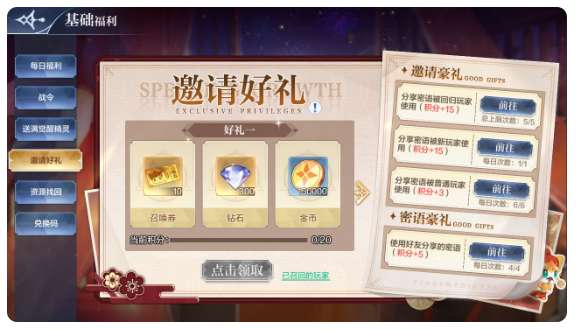 邀请好礼:召唤券*20