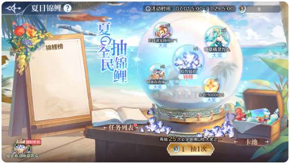 六、【夏日锦鲤】全民抽锦鲤,10万钻石、大师九九、觉醒魂、神器等你拿