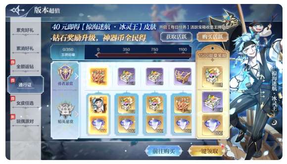 活动内容:通行证全新赛季开放,最新航海冰灵王皮肤等你来拿。