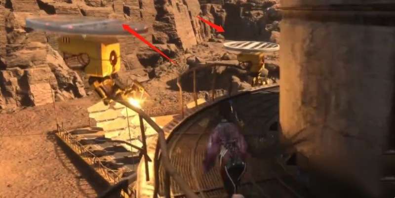 3、先和塔台门口的小机器人交谈,之后从旋转楼梯到第二层平台上。
